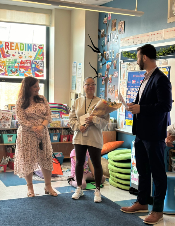 We had the opportunity to celebrate the dedication and work of Big Apple Winner Stephanie Atkins with Dr. Pretto, Principal Mousouroulis, Assistant Principal Cataldo, and the District Big Apple Team!