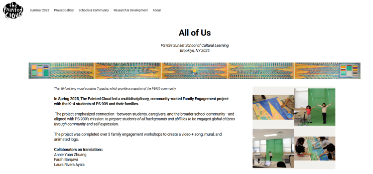 In Spring 2025, The Painted Cloud led a multidisciplinary, community-rooted Family Engagement project with the K–4 students of PS 939 and their families.